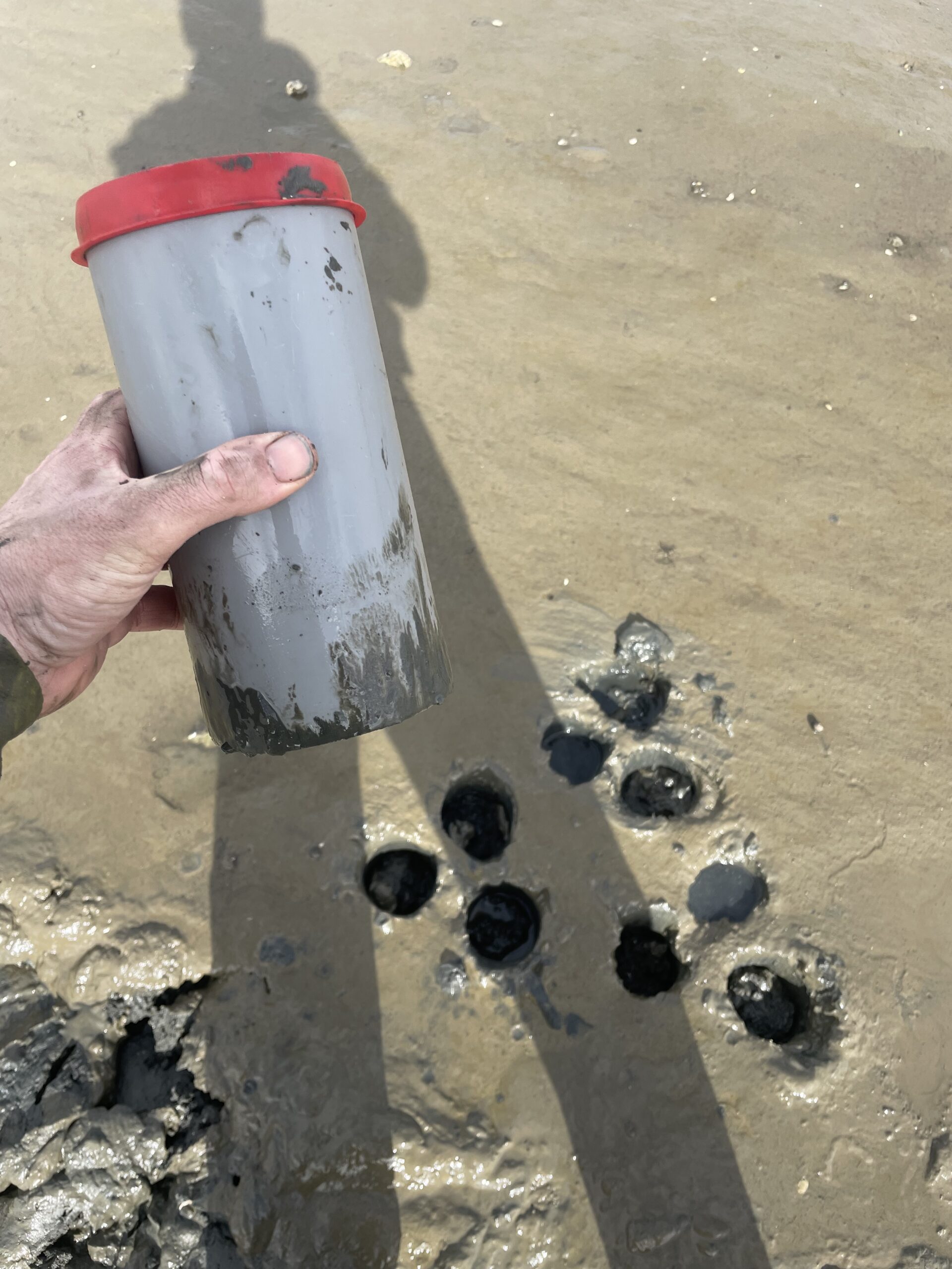 Sods of 10cm ⌀, and around 10-12cm depth are collected from healthy donor meadows (where there is lots of seagrass) and are transplanted onto bare mid flats (where there was previously seagrass, but where it is no longer present).